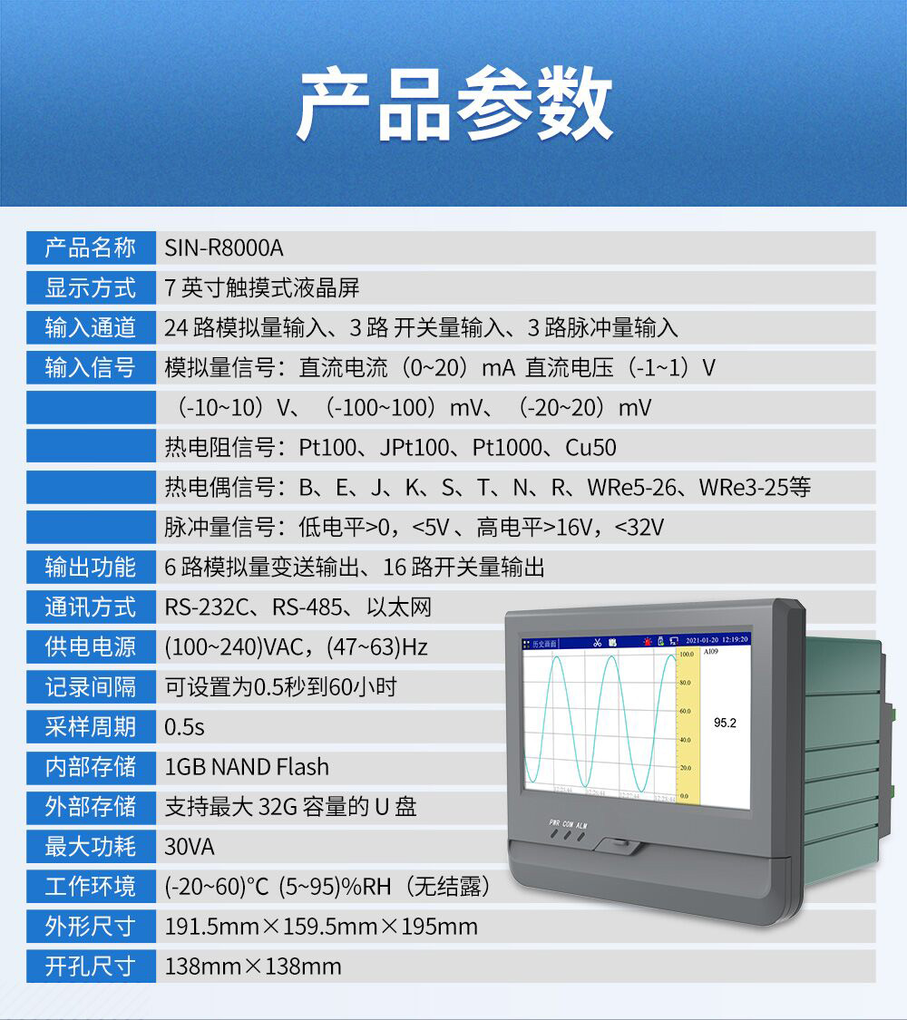 聯測儀表SIN-R8000A觸摸屏7英寸無紙記錄儀0.5S高速采集1-24路可選