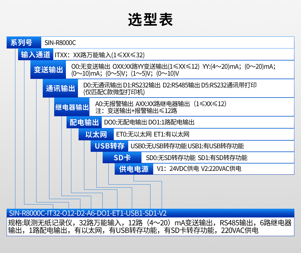 聯(lián)測儀表SIN-R8000C可帶12路報警輸出或12個變送輸出,RS232/485通訊接口,以太網(wǎng)接口,微型打印機接口和USB接口,SD卡插座;可提供傳感器配電;采用拔插式間距為5.08的接線端子,方便電氣連接;具有強大的顯示功能,實時曲線顯示,歷史曲線追憶,棒圖顯示等。人性化的外觀設(shè)計、完美的功能體現(xiàn)、可靠的硬件品質(zhì)、精湛的制造工藝,使本產(chǎn)品具有更高的性能價格比。