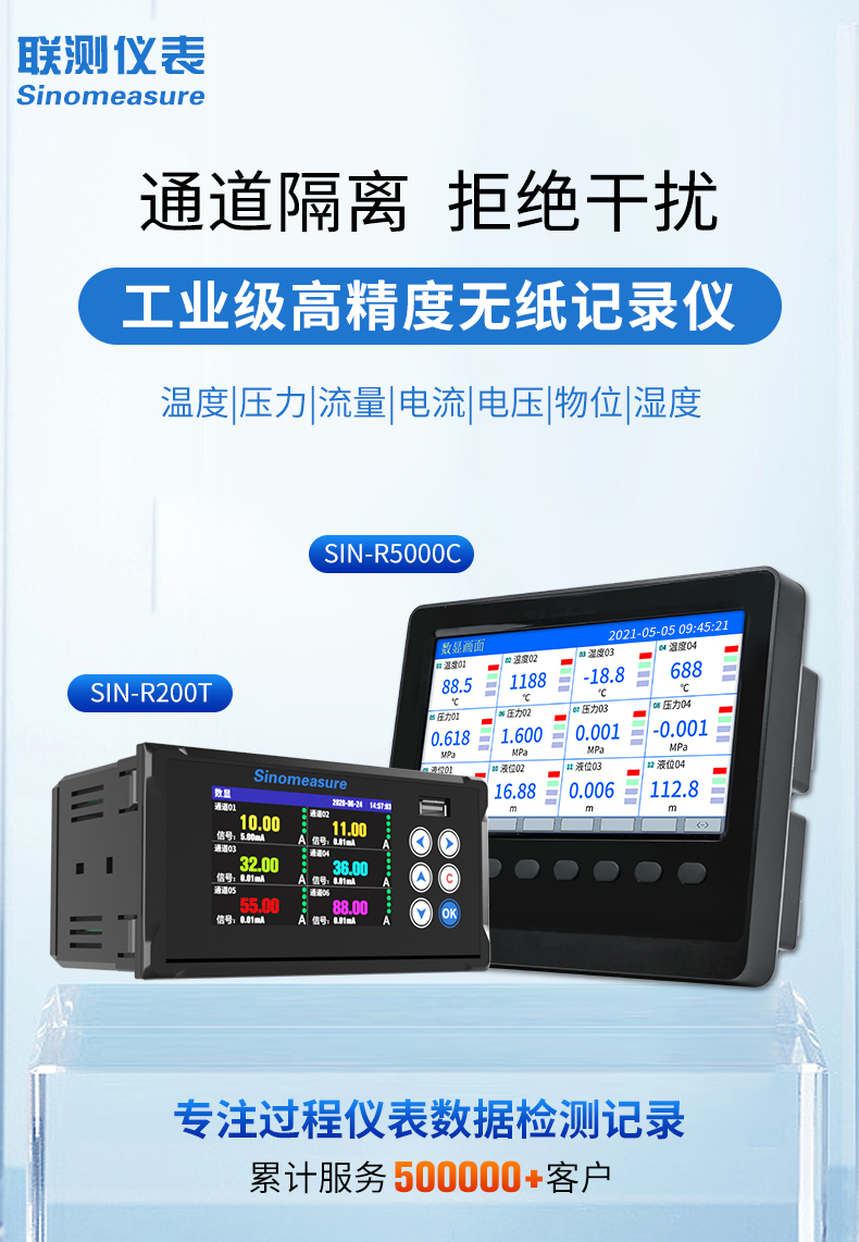 應用行業 聯測儀表SIN-R200T無紙記錄儀可輸入電流、電壓、熱電偶、熱電阻和頻率等工業信號。